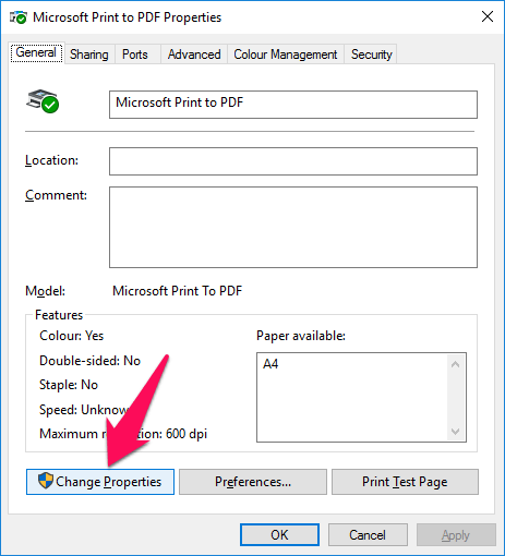 - Luego haga clic en el botón Cambiar propiedadesy luego cambie el nombre y haga clic en los botones Aplicary Aceptar.