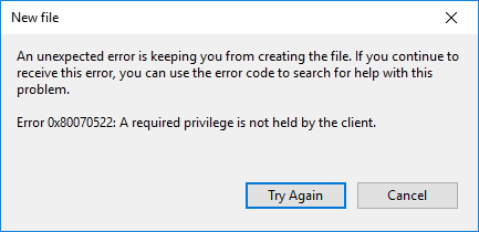 Error 0x80070522: El cliente no tiene el privilegio requerido.
