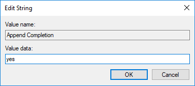 5.Haga doble clic en «Append Completion String» y cambie su valor según: