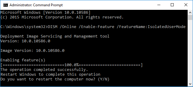 Desmadre/imagen: /Habilitar-Característica /NombreCaracterística:ModoUsuario Aislado O dism /Online /Enable-Feature /FeatureName:IsolatedUserMode