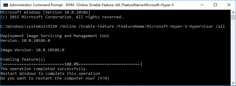 Desmadre/imagen: /Habilitar-Característica /NombreCaracterística:Microsoft-Hyper-V-Hypervisor /todos O dism /Online /Enable-Feature:Microsoft-Hyper-V /All