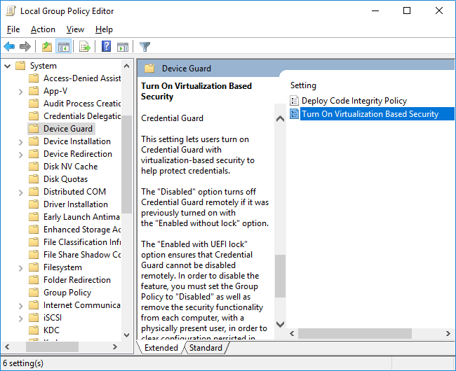 Configuración de la computadora> Plantillas administrativas> Sistema> Device Guard