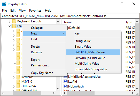 HKEY_LOCAL_MACHINEN-SystemN-CurrentControlSetN-ControlNLSA