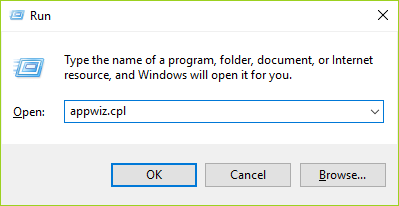 1.Presiona la tecla Windows + R, luego escribe appwiz.cpl y presiona Enter para abrir Programa y Características.