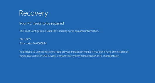 El archivo de datos de configuración de arranque falta generalmente acompañado de un código de error 0xc0000034 y este error es un error de pantalla azul de la muerte (BSOD) que resulta en un problema grave, pero no te preocupes, la solución es bastante simple, sólo tienes que seguir los siguientes pasos para solucionar este problema.