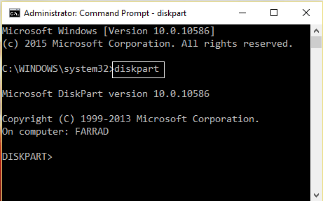 1.De nuevo vaya a Command Prompt y teclee: diskpart
