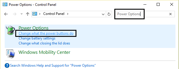 2.En Opciones de energía, haga clic en cambiar lo que hace el botón de encendido.