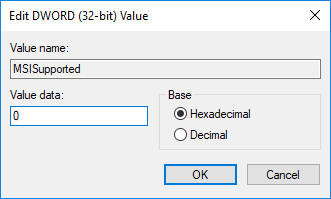 15.Cambie el valor de DWORD apoyado por MSIS a 0 y haga clic en OK. Esto apagaría el MSI de su sistema.
