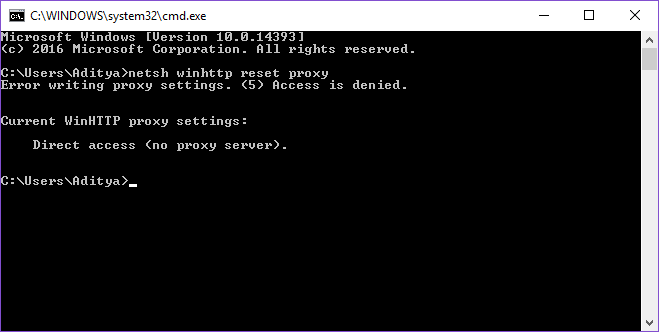 6.Escriba el comando $0027netsh winhttp reset proxy$0027 (sin comillas) y pulse enter.