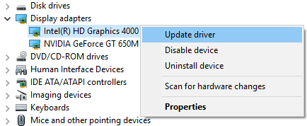 2.Expanda el adaptador de pantalla y luego haga clic con el botón derecho del ratón en su adaptador de vídeo y seleccione Actualizar controlador.
