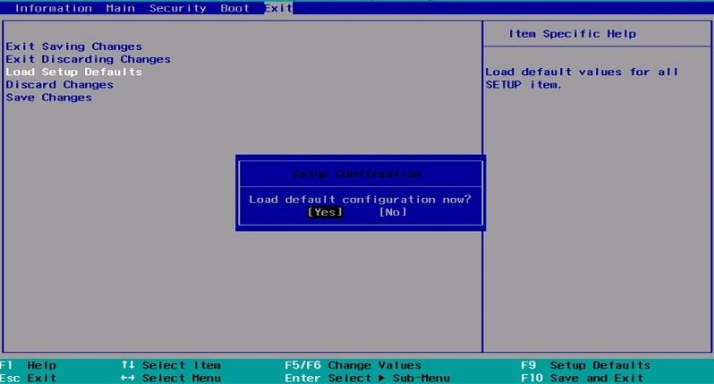 3.Selecciónelo con las teclas de flecha, pulse Intro y confirme la operación. Su BIOS utilizará ahora sus ajustes predeterminados.