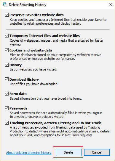 4.Luego haga clic en Borrar y espere a que IE borre los archivos temporales.