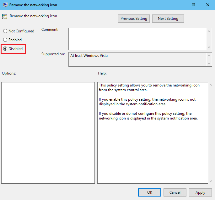 Método 5: Habilitar el icono de la red en el Editor de Políticas de Grupo