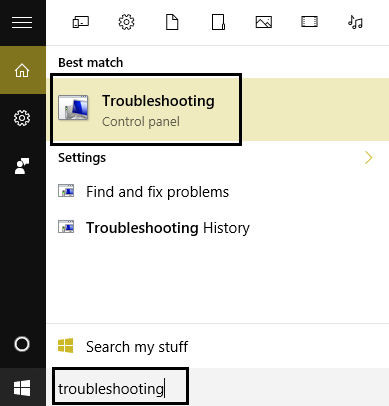 3.Ahora presiona la tecla Windows + W y escribe «Solución de problemas».