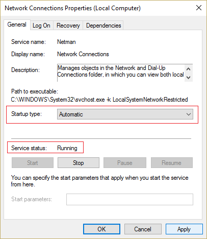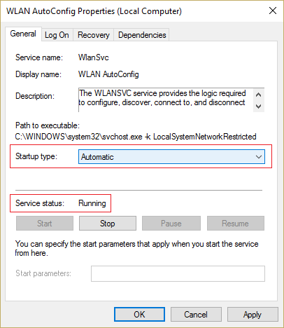 4.Asegúrese de que el tipo de inicio esté configurado en Automático y haga clic en Iniciar si el servicio no se está ejecutando.