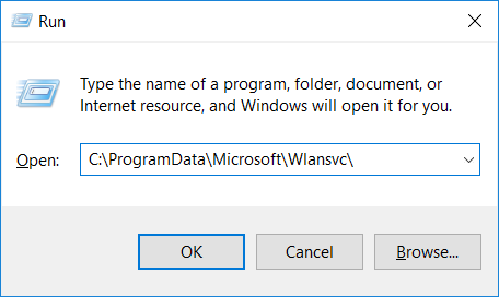 3. Presiona de nuevo la tecla Windows + R y escribe «C:N-ProgramDataN-MicrosoftNWlansvc» (sin comillas) y presiona Enter.