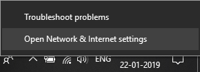 1.Haga clic con el botón derecho del ratón en el icono de la red en el área de notificación y seleccione «Abrir configuración de red e Internet».