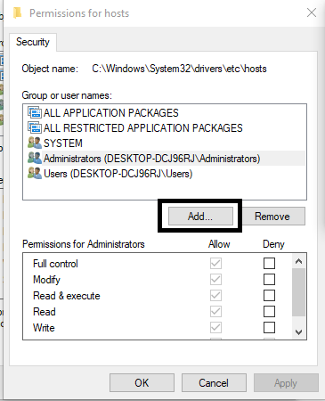 6.Ahora en la ventana de permisos seleccione su cuenta de administrador y asegúrese de marcar Control total (Permitir).
