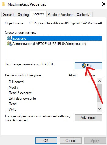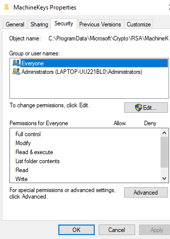 8.Luego haz clic en OK y de nuevo abre la ventana de Configuración de Seguridad Avanzada.