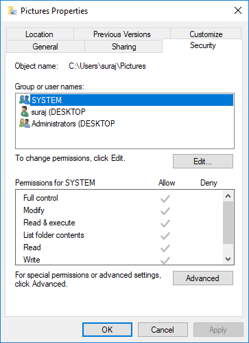 Nota: Puedes seleccionar qué grupo debe tener el permiso de archivo completo en tu ordenador, puede ser tu cuenta de usuario o Todos en el PC.