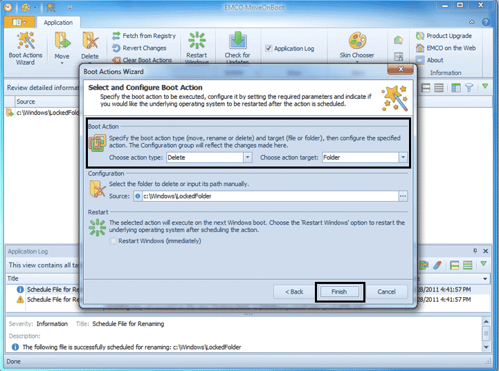Si ninguno de los métodos anteriores funciona, puede intentar eliminar los archivos antes de que Windows se inicie completamente. En realidad, esto se puede hacer usando un programa llamado MoveOnBoot. Sólo tienes que instalar MoveOnBoot, indicarle qué archivos o carpetas deseas eliminar que no puedes borrar y luego reiniciar el PC.