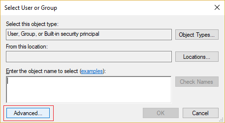 3.Haga clic en Avanzado en la ventana Seleccionar usuario o grupo.