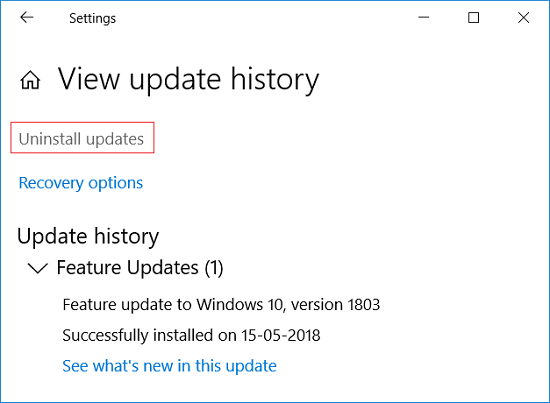 3.Ahora haga clic en Desinstalar actualizaciones en la siguiente pantalla.