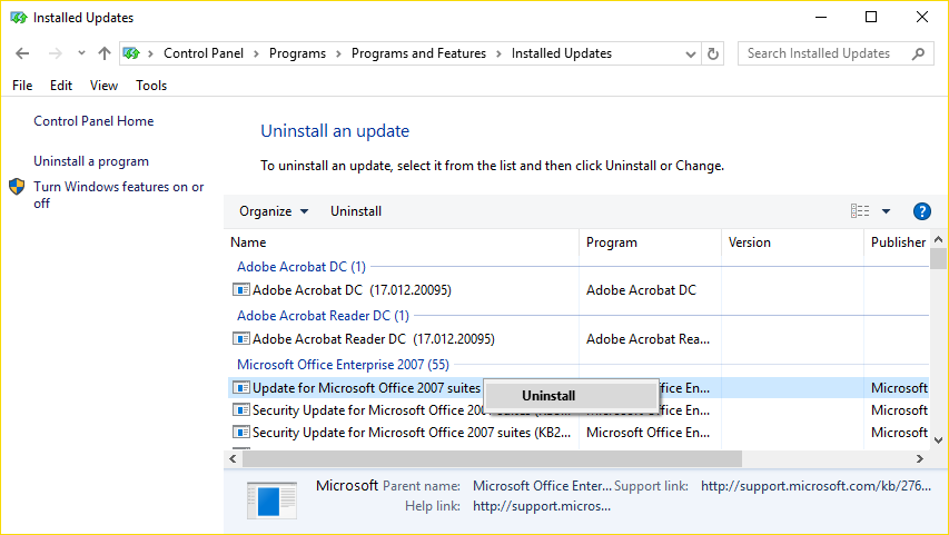 4.Finalmente, de la lista de actualizaciones recientemente instaladas, haga clic con el botón derecho del ratón en la actualización más reciente y seleccione Desinstalar.
