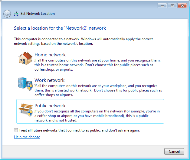Paso 3 – Haga clic en el perfil de la red donde se le pedirá que elija la red apropiada. Windows 7 explica correctamente la característica de cada red para que pueda leerla con atención y luego elegir el tipo de red adecuado para su conexión.