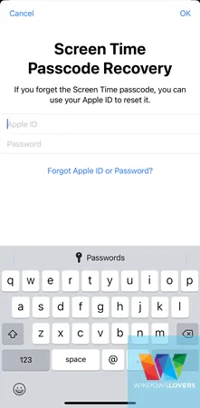 Ingrese sus credenciales de ID de Apple que se utilizarán para restaurar el código de acceso si lo olvida.