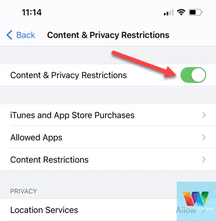 Toque «Restricciones de contenido y privacidad» y deslice el control deslizante para habilitar estas restricciones.