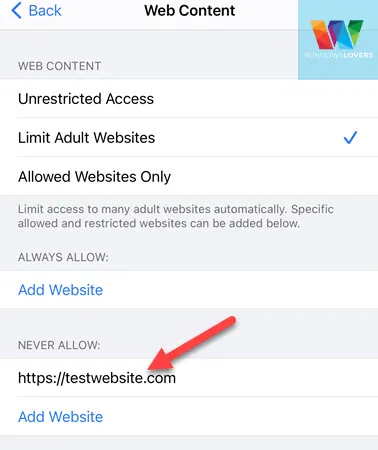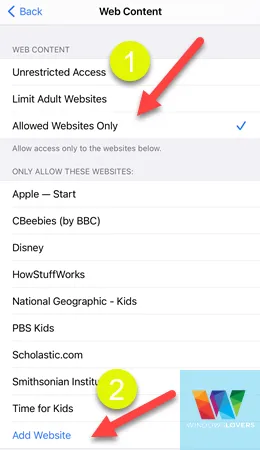 Si desea aplicar otras restricciones, revise las opciones proporcionadas en los siguientes pasos. Por el bien de este tutorial, pasaré a la parte sobre cómo bloquear sitios web confidenciales en iPhone/iPad. <