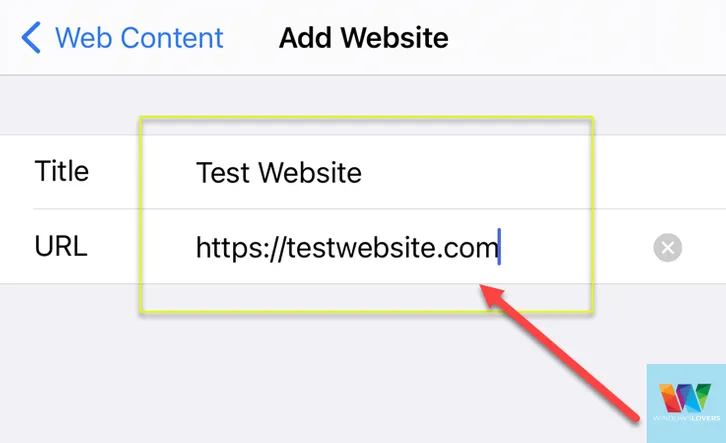 Toque «Agregar sitio web» y agregue la URL completa del sitio web. Algunos sitios web tienen «HTTPS://» al principio, por lo que le aconsejo que también lo agregue.