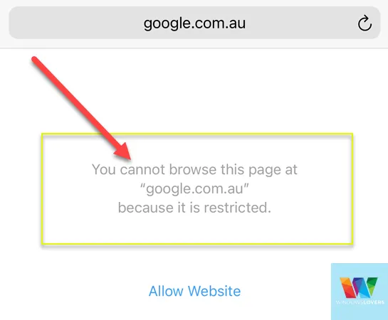 Debajo de «Aplicaciones permitidas», toque «Restricciones de contenido» y desplácese o busque «Contenido web».