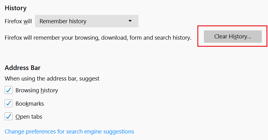3.Aquí haga clic en el botón de Borrar Historia y se abrirá una nueva ventana.