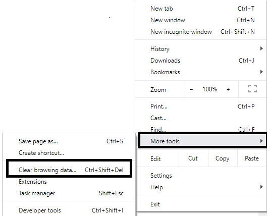 1.Haga clic en los tres puntos y navegue hasta Menú> Más Herramientas>Borrar Datos de Navegación.