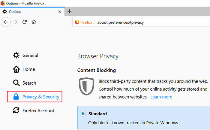 2.Ahora selecciona Privacidad y Seguridad en el menú de la izquierda y baja a la sección de Historia.