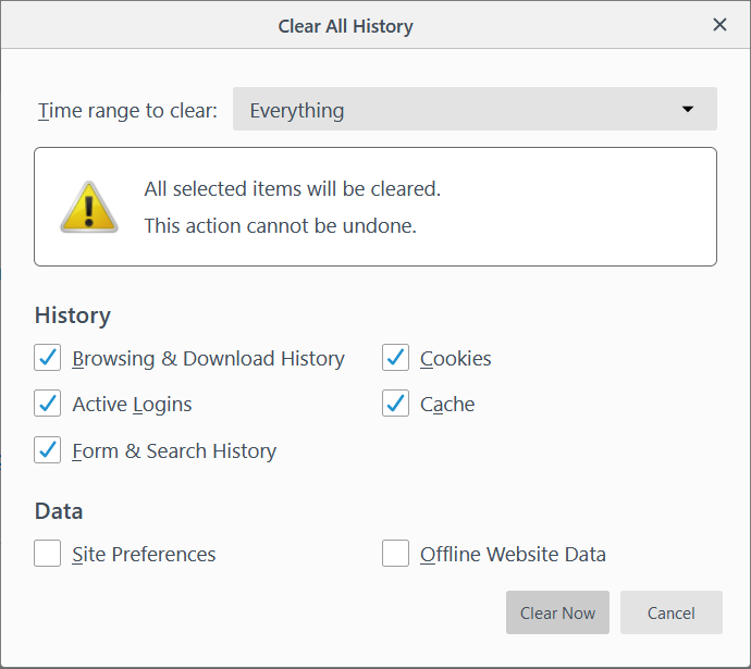 Esto borrará todo el historial, las cookies y la caché de su navegador.