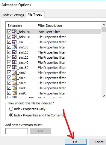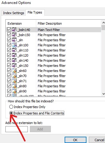 Nota: Como se han seleccionado todas las extensiones de archivo, esto le permitirá buscar en el contenido de todos los tipos de archivos disponibles en su PC.