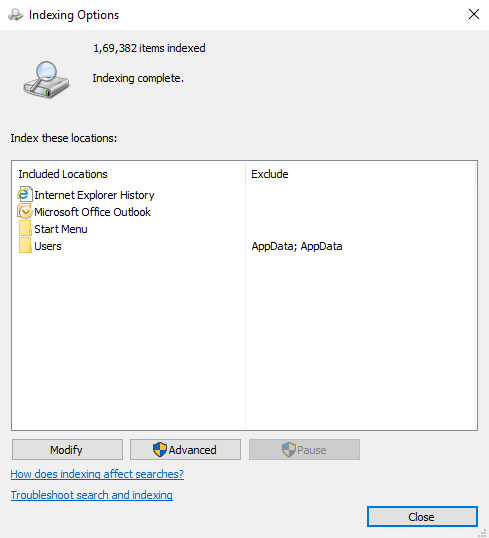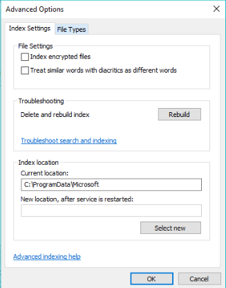 Nota: La reconstrucción del índice puede llevar mucho tiempo dependiendo del número y tamaño de los archivos de su PC.
