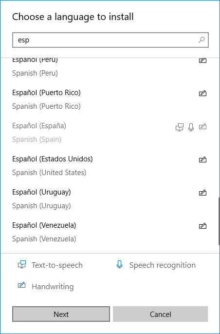 8.Obtendrá una opción adicional para instalar, como la de habla y escritura a mano. Haz clic en la opción Instalar.