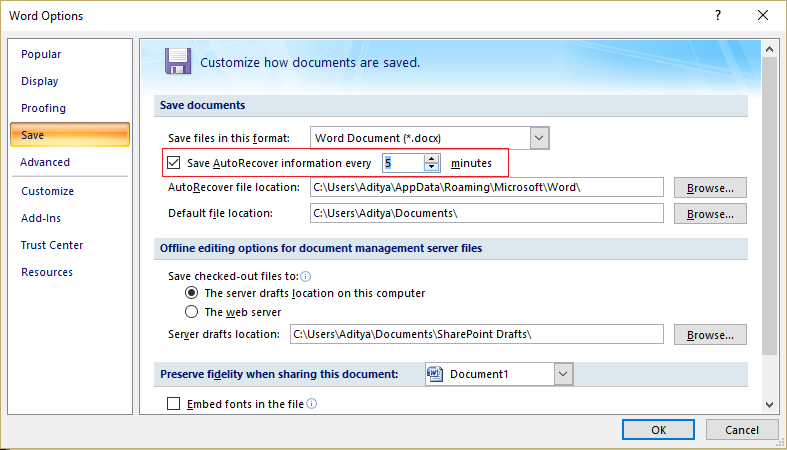Cómo cambiar el tiempo de auto-guardado en Word:A veces el intervalo de autoguardado en Word está establecido en 5-10 minutos, lo cual no es muy útil para muchos usuarios, ya que si por error se cierra su palabra, perderá todo su trabajo duro ya que el autoguardado no hizo su trabajo. Por lo tanto, es muy importante establecer el intervalo de tiempo de autoguardado para Microsoft Word de acuerdo a sus requerimientos y es por eso que el solucionador de problemas está aquí para enumerar todos los pasos necesarios para cambiar el tiempo de autoguardado en Word.