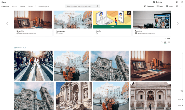 La aplicación Fotos también ofrece una forma muy conveniente de almacenar sus fotografías. Instale OneDrive en su teléfono inteligente, tanto Android como iOS, active la función Carga de cámara y cada foto y video de la galería de su teléfono se cargará automáticamente en su PC. Además de eso, puede etiquetar personas en la aplicación Fotos y luego encontrar imágenes específicas con un solo clic.