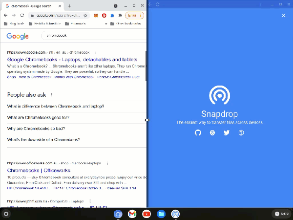 Como puede ver en el video de arriba, tengo dos ventanas abiertas. Uno es un navegador y el otro es la aplicación Snapdrop.