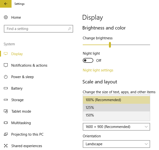 2.Ahora en Escala y diseño, en el desplegable «Cambiar el tamaño del texto, aplicaciones y otros elementos» elija «100% (Recomendado)».