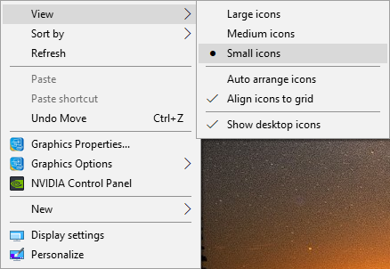 Método 3: Elegir Iconos pequeños para el tamaño de los iconos del escritorio