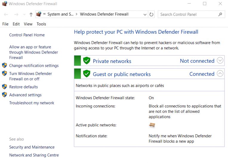 Desactivar el Firewall de Windows Defender