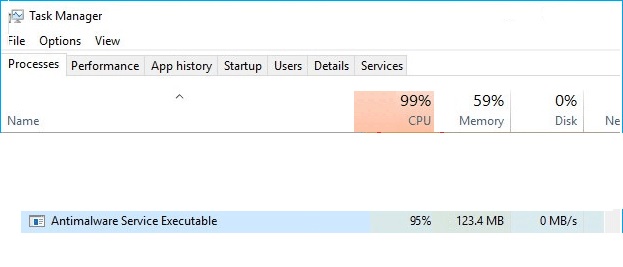 ¿Cuáles son las causas de la alta carga de la CPU con Antimalware Service Executable?