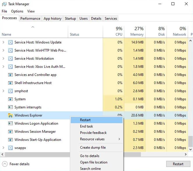 - Reiniciar el Explorador de Windows.