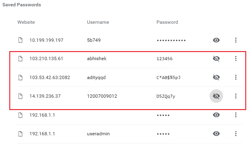3.Una vez que haga clic en la opción Contraseña, navegará a una pantalla, donde podrá ver toda la contraseña guardada. Pero todas las contraseñas estarán ocultas.